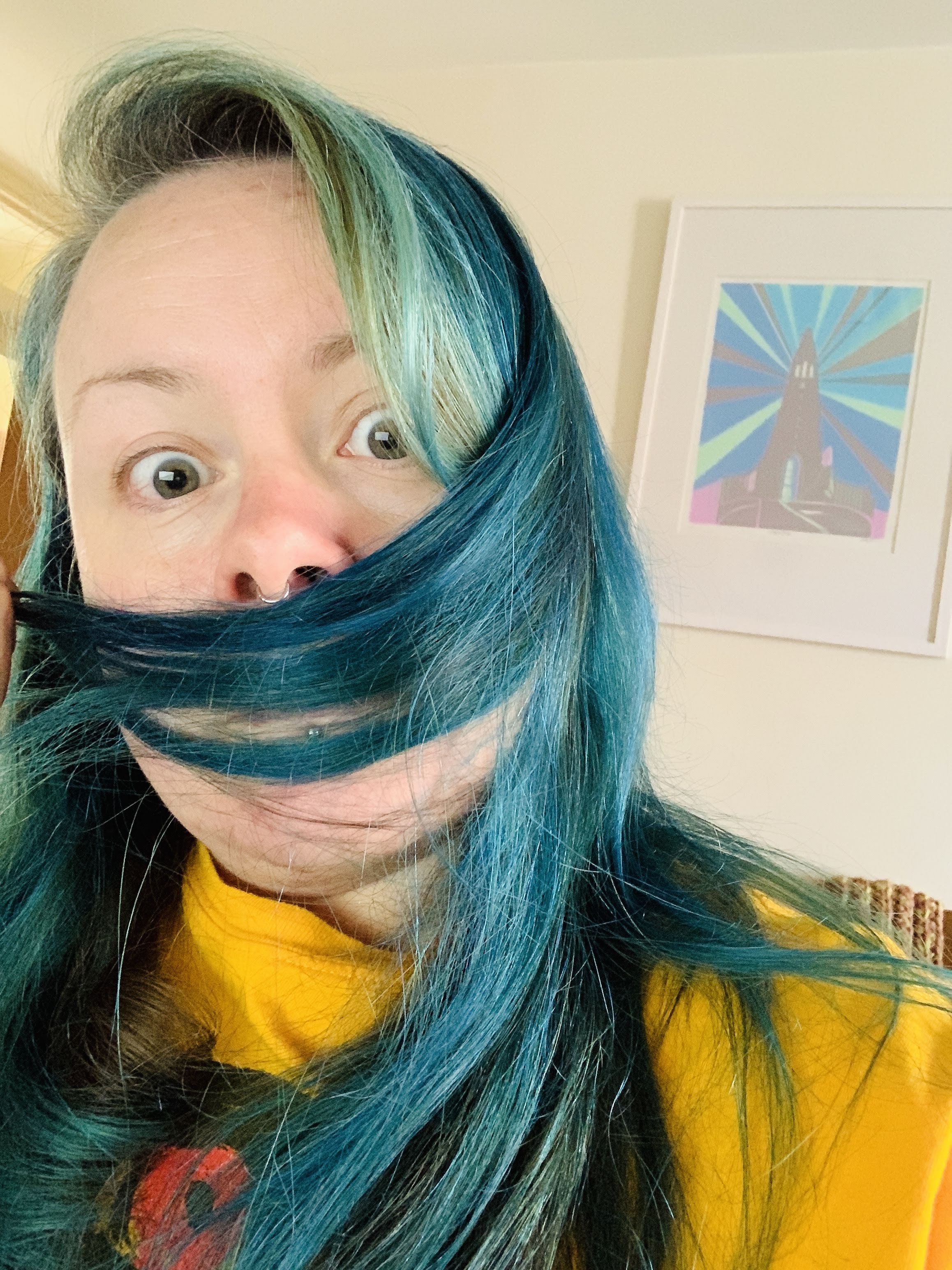 May 2020 – Yes, more walks in the park along with walks to Summertown for shopping as our local shop closed for a couple of weeks due to Covid in the family. Did some house rearranging after buying furniture and general nesting along with new garden furniture – prepared for a Summer spend mostly in the garden. Discovered a hole in our bedroom curtain made a camera obscura on the ceiling, dyed my hair blue (I had dyed the top half pink during April but it faded fast), did an online beer and cheese pairing with Wild Beer Co.